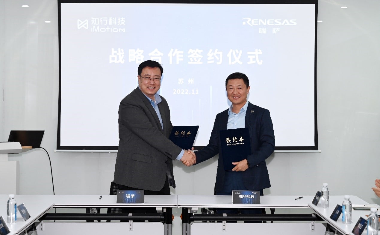 瑞萨电子(中国)有限公司董事长赵明宇与知行汽车科技CEO宋阳进行战略合作框架协议签约