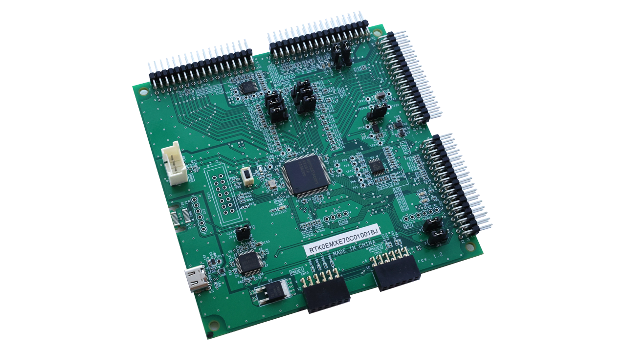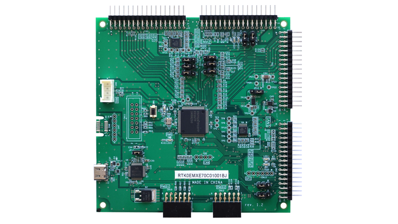 This product is a CPU board for motor control equipped with RX26T. Motor control using RX26T can be easily realized by using it in combination with a supported inverter board. By using a supported communication board, the CPU board can be electrically isolated from the PC for safe motor control evaluation and debugging.