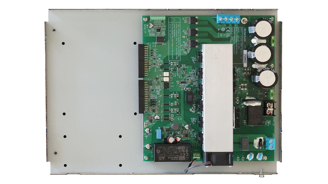 An inverter board that allows users to evaluate motor control with ease using a high-voltage brushless DC (BLDC)/induction motor. By combining with a compatible CPU board, users can immediately start evaluating motor control.