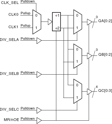 - Ten single-ended LVCMOS outputs, 7Ω typical output impedance