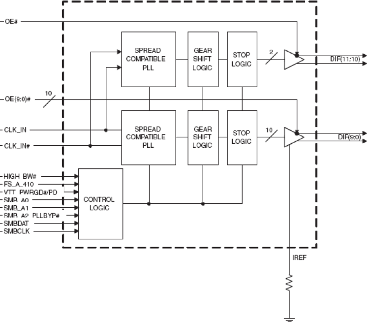 - DIF_(9:0) can be "gear-shifted" from the input CPU Host Clock