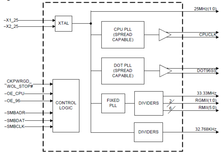 - 2 - 25MHz REF 3.3V LVTTL outputs - 1 defaults to Wake-on-LAN