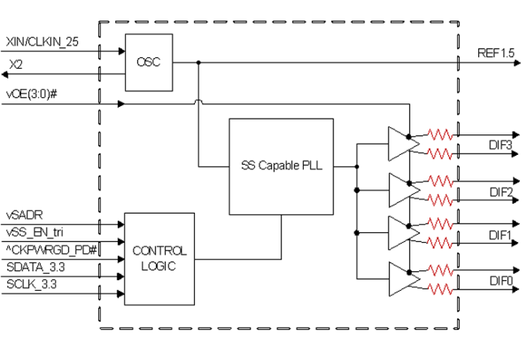 - DIF outputs blocked until PLL is locked; clean system start-up