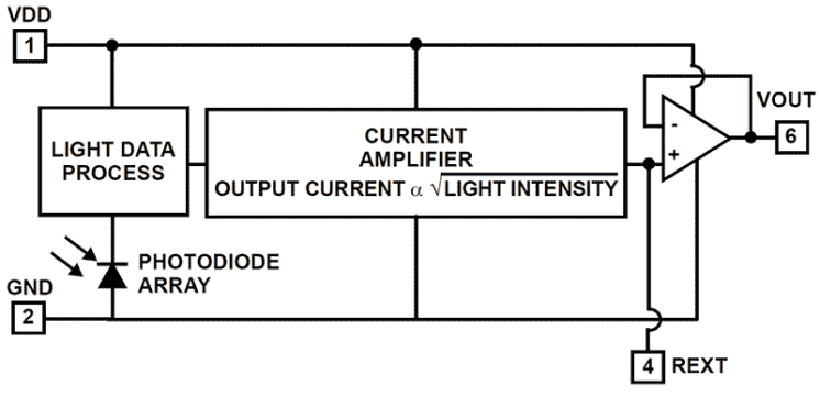 The ISL29102 is a low cost, light-to-voltage silicon optical sensor combining a photodiode array, a nonlinear current amplifier, and a micro-power op amp on a single monolithic IC. Similar to human eyes, the photodiode array has peak sensitivity at 550nm and spans from 400nm to 600nm, rejecting UV light and IR light. The input luminance range is from 0.3 lux to 10,000 lux. The integrated nonlinear current amplifier boosts and converts the photodiode signal in a square root fashion, extending the light input dynamic range, while maintaining excellent sensitivity at dim conditions with low lux levels. The device consumes minimal power over a wide range of ambient lux levels because the current consumption ramps at a square root fashion. A dark-current compensation circuit minimizes the effect of temperature-dependent leakage currents in the absence of light, improving the light sensitivity at low lux levels while maintaining excellent sensitivity at low lux levels. The built-in 1μA op amp gives the ISL29102 an output voltage driving advantage for heavier loads. The ISL29102 is housed in an ultra-compact 2mm x 2.1mm ODFN plastic case surface mount package. Operation is rated from -40 °C to +85 °C.