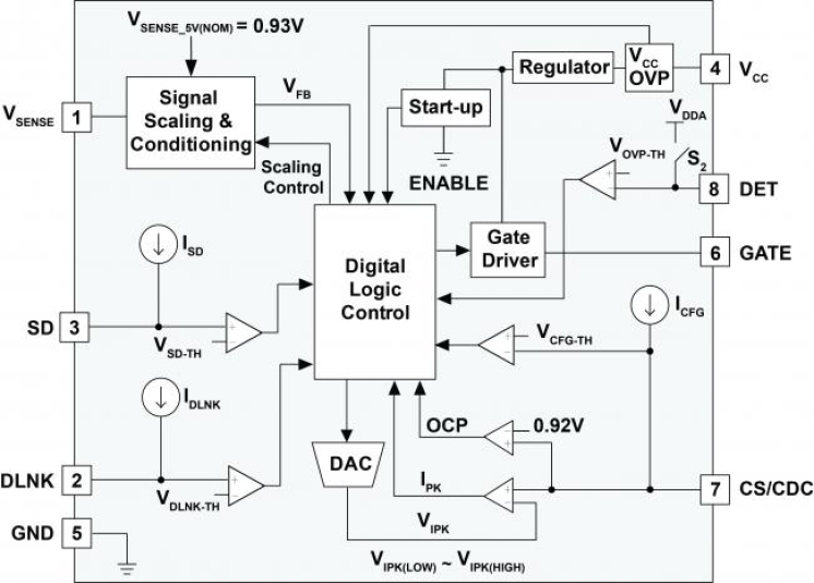 | Control Mode | Primary-Side Regulation Peak Current Mode DCM |