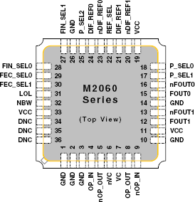The M2060/61/62 and M2065/66/67 are Voltage Controlled SAW Oscillator (VCSO) based clock PLLs designed for FEC clock ratio translation in 10Gb optical systems such as OC-192 or 10GbE. They support Forward Error Correction (FEC) clock multiplication ratios, both forward (mapping) and inverse (de-mapping). Multiplication ratios are pin-selected from pre-programming look-up tables.