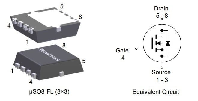 | μSO8-FL | 3.30 x 3.50 x 0.85 | 8 |
