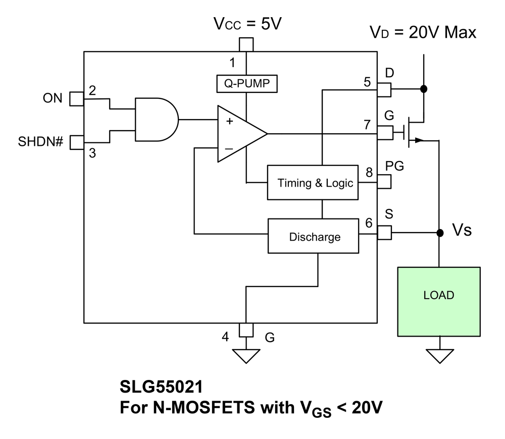 - SLG55021 Drain Voltage Range 1.0V to 20V