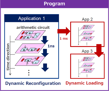 Dynamic reconfiguration can modify the combination of arithmetic circuits by each clock, while dynamic loading can reload the entire new algorithm library within 1ms