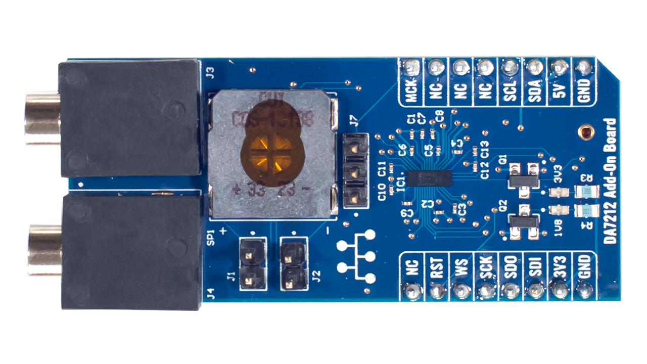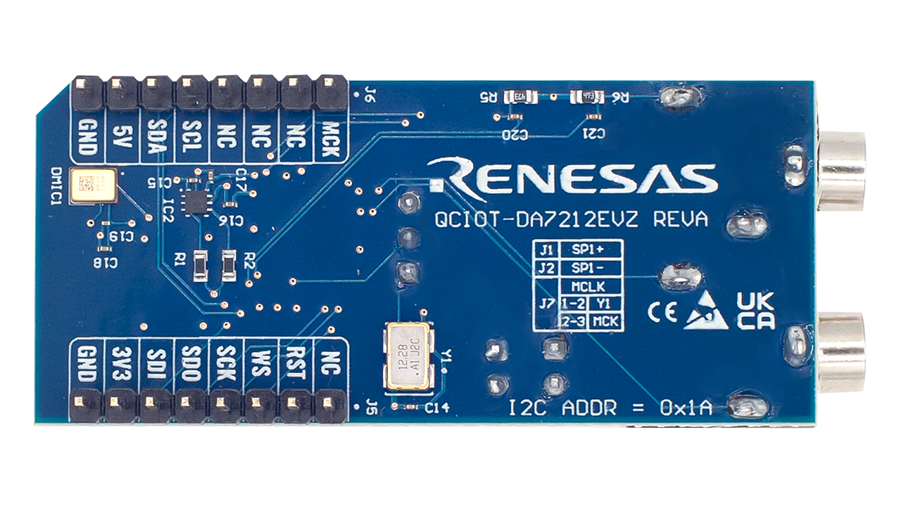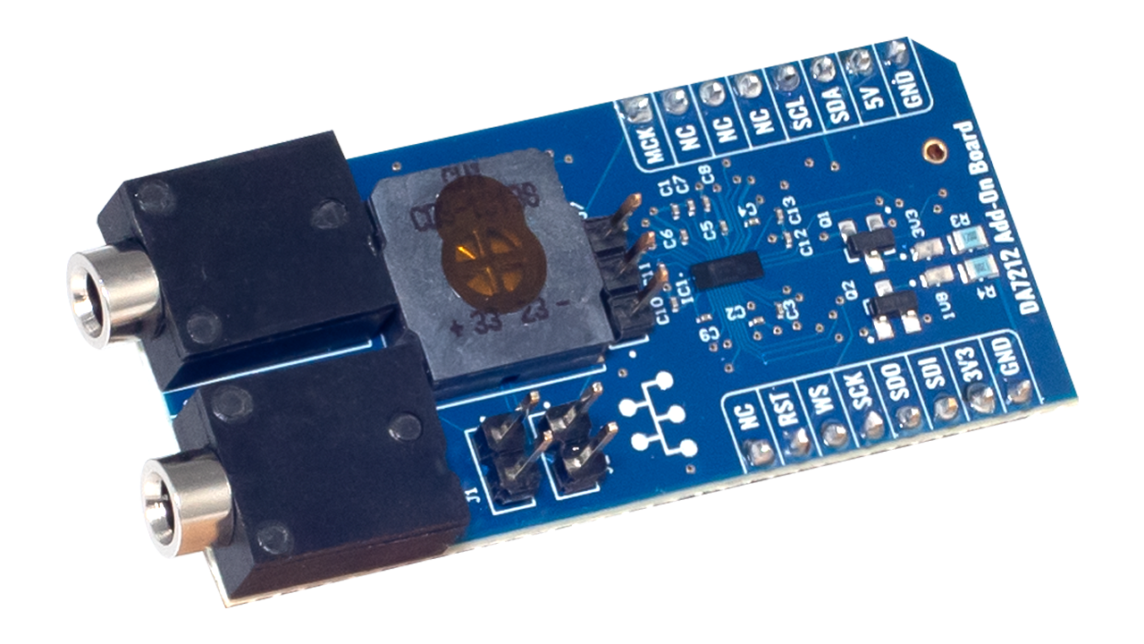 The QCIOT-DA7212EVZ Click Board™ demonstrates the functionality and performance of the DA7212. The DA7212 is an ultra-low power audio codec designed for portable audio devices. Comprehensive analog mixing and bypass paths to the output drivers are available.