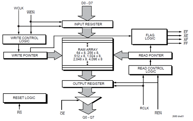 The 72420 is a 64 x 8 SyncFIFO™ with clocked read and write controls. This FIFO is useful for a wide variety of data buffering needs, such as graphics, Local Area Networks (LANs), and interprocessor communication. It has 8-bit input and output ports. The Read Clock can be tied to the Write Clock for single clock operation or the two clocks can run asynchronous of one another for dual clock operation.