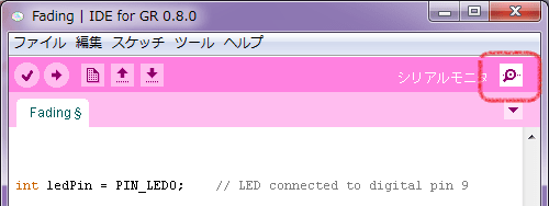 GR-SAKURAとコミュニケーションするためにはシリアルモニターを使います。やってみましょう。
