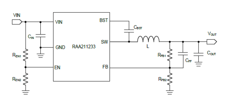 The RAA211233 is an integrated 24V, 3A, 1.4MHz synchronous buck regulator with current mode constant on-time (COT) control.