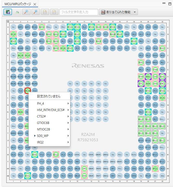 GUI上で端子設定を行い、兼用機能の競合について確認、解決することができます。