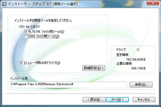 ⇒ステップ3/7:開発ツール選択―使用するマイコンのツールを選択して、「次へ」をクリック(図4)(今回はRL78、78Kファミリ用ツールを使用します)