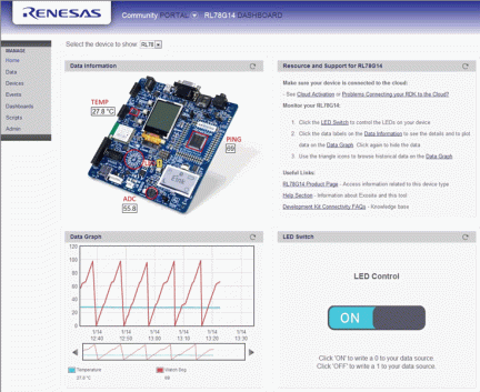 The Renesas Demonstration Kit (RDK) for RL78/G14 is an evaluation and demonstration tool for Renesas RL78/G14 microcontrollers and its partners. The goal is to provide the user with a powerful debug and demonstration platform targeted at common applications. To aid in the evaluation of the RL78 family of microcontrollers, we include 2 development environments : e2 studio : Renesas eclipse embedded studio, known as e2 studio, is a complete development and debug environment based on the popular Eclipse CDT project. Essentially open source, the Eclipse CDT covers build (editor, compiler and linker control) as well as debug phase based on an extended GDB interface. It supports GCC and IAR compiler. IAR's Embedded Workbench Kickstart Edition for the RL78 : this full featured tool suite allows for up to 16KB of application code to be implemented on the RL78/G14 RDK. To facilitate programming the RDK, both tools support the Renesas TK Debugger which is on-board the RL78/G14 RDK.